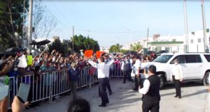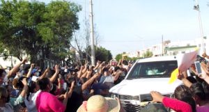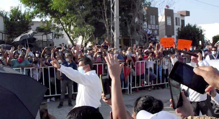Finalmente al término del evento, ciudadanos que traía una porra se dirigieron al gobernador para saludarle desde lejos derivado de la pandemia, y con porras lo despidieron para posteriormente el día de mañana reactivara la agenda de trabajo conjuntamente con el Presidente de México, Andrés Manuel López Obrador.