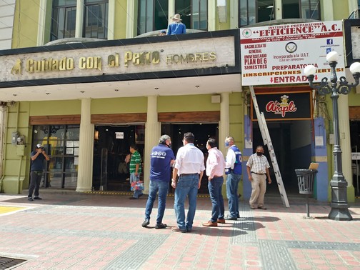 Tampico, Tamaulipas.-Para dar seguridad a todos los ciudadanos que transitan por la calles del centro de Tampico, hoy se inició la revisión de marquesinas en edificios del primer cuadro de la ciudad por integrantes de seis equipos de trabajo, luego de la tragedia registrada en días pasados, en la calle Carranza y Juárez, donde falleció una joven de 19 años de edad y otra persona resultó herida.