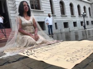 Expresó que ella protesta a través del arte, la mujer violentada, lo que se ha visto de la muerte, son pacíficas, pues el arte es el que habla.
