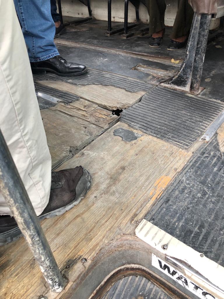 Aseveró que al acudir los inspectores de la dependencia corroboraron que efectivamente el urbano tenía el suelo cayéndose en pedazos y picado por lo oxidado que se encontraba, mientras que la parte trasera en la puerta de emergencia no tenía el vidrio.