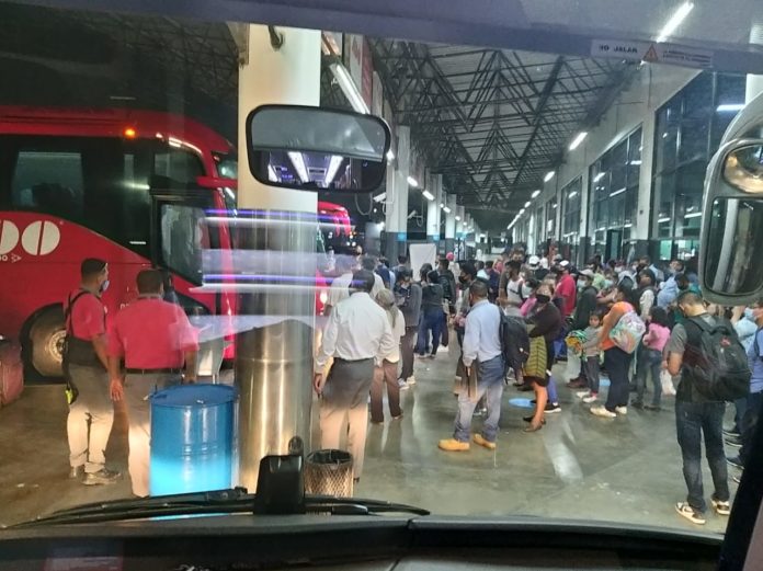 Usuarios de esa empresa de autobuses reportaron que esta situación se presentó a las 23:30 horas, pues por el problema mencionado había una gran afluencia de pasajeros que no respetaban la sana distancia y niños sin cubrebocas.