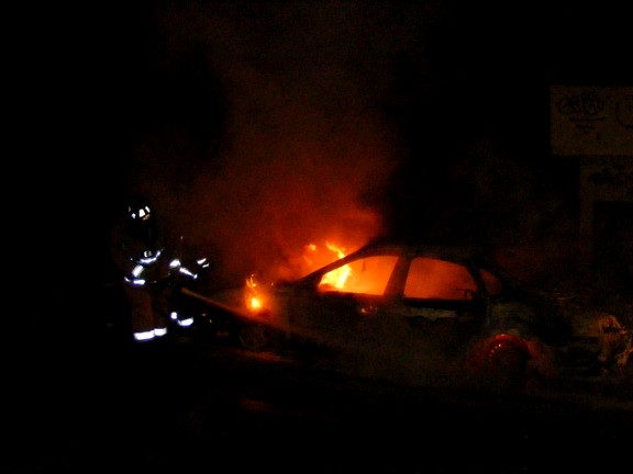 Reynosa, Tamaulipas.-Con intensas llamas que despedían de varios metros, un automóvil quedo totalmente quemado, donde su ocupante se presume lo dejo abandonado y se conoció que el percance se debió a un corto circuito en la unidad.