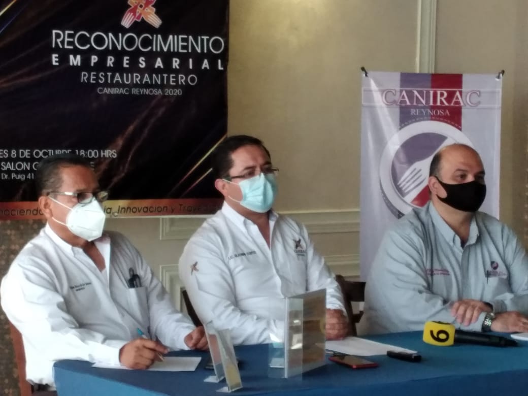 Reynosa, Tamaulipas.- En rueda de prensa, Bladimir Cortes, presidente de la Cámara Nacional de Restaurantes y Alimentos Condimentados (Canirac) en Reynosa, informó que están organizando la entrega de Reconocimientos Empresariales a los restauranteros más destacados afiliados a Canirac. Serán 23 los restaurantes que serán reconocidos por la Cámara, el día jueves 8 de octubre en un evento que se celebrará en un conocido salón de eventos de la colonia Doctores. Entre los restaurantes destaca el ‘Café y Restaurante Sánchez’ por sus 85 años de trayectoria (es el restaurante más antiguo de la ciudad), ‘El Mesón 241” por su cocina regional del año, entre otros restaurantes.