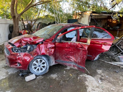 Cuadras más adelante, el vehículo Ford Figo color rojo, modelo 2017 sin placas de circulación, se impactó en contra de un domicilio; ahí descendieron los dos tripulantes a quienes se les logró detener metros más adelante. En el interior del automóvil, que resultó con reporte de robo; fueron encontrados un arma larga y cinco cargadores.