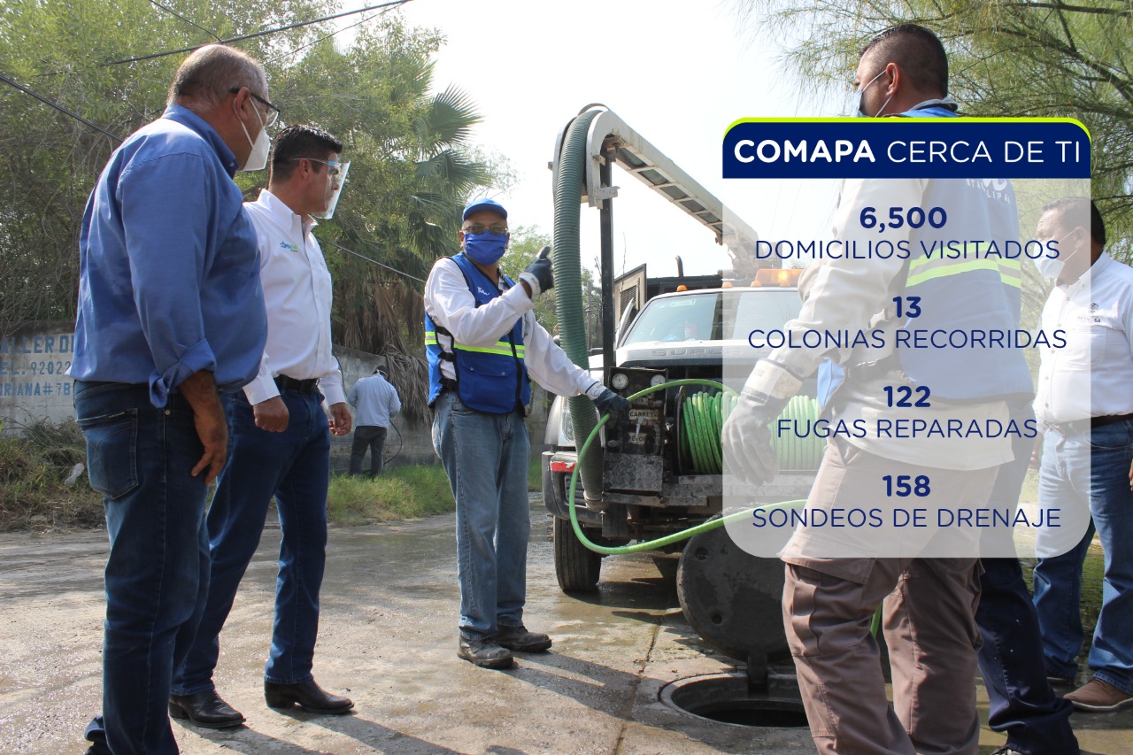 Más de 6 mil 500 domicilios de 13 diferentes colonias, han sido visitados por el personal de la Comisión Municipal de Agua Potable y Alcantarillado de Reynosa durante las jornadas del programa “COMAPA Cerca de ti”, en las últimas tres semanas, en las que se recorre calle por calle para solucionar fugas de agua potable y residual, reparar tuberías, sondear y limpiar alcantarillas, entre otras acciones.