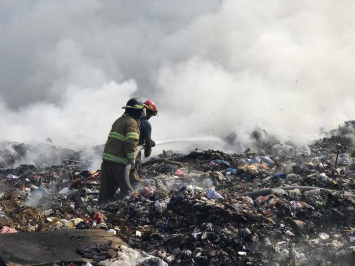 La Coordinación de Protección Civil y Bomberos recibió a las 9:00 horas un llamado a través del Número de Emergencia 911, con el reporte de incendio del tiradero irregular, Las Calabazas, a donde se trasladó la unidad Titán 001, la pipa 003 y a las 11:00 horas se reforzó la lucha contra el fuego con la pipa 005.