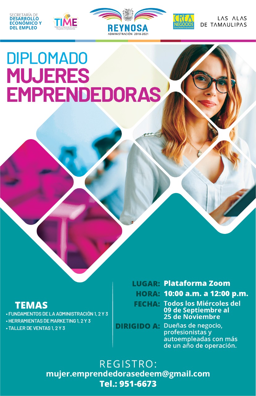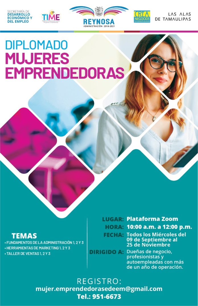 REYNOSA, TAM.- El Gobierno Municipal busca incrementar el emprendimiento y la cultura empresarial de las mujeres de esta ciudad con programas de capacitación que en tiempo de pandemia son impartidos por la Secretaría de Desarrollo Económico y del Empleo por medios virtuales.