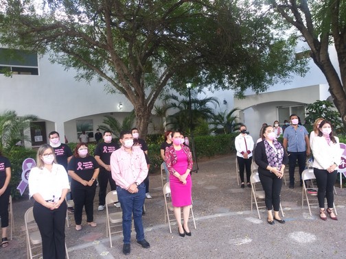 Al término del acto protocolario se guardo un minuto de silencio por tres mujeres que perdieron la vida en este año a causa del cáncer de mama, a las cuales se les reconoció poniéndoles un mural con moños de color rosa en un árbol.