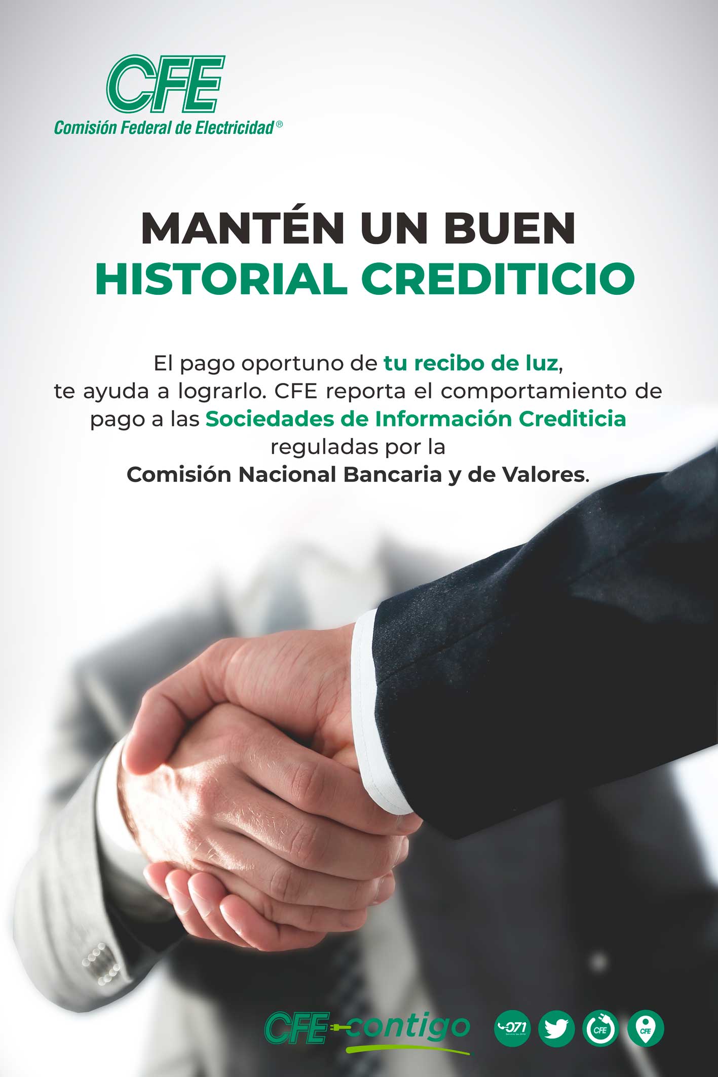 Por lo anterior informa que el comportamiento de pago del servicio de energía eléctrica es reportado a las instituciones de referencia, para formar parte del historial crediticio y su consulta esta disponible de cualquier otorgante de crédito o de servicios a nivel nacional que cumpla con lo dispuesto en el articulo 28 de la Ley para regular las sociedades de información crediticia.