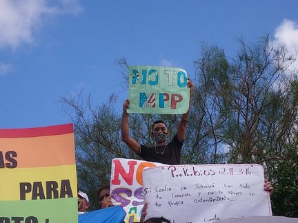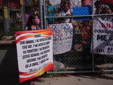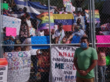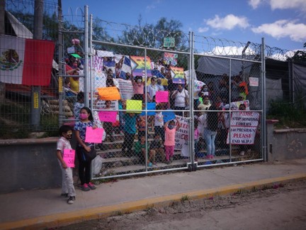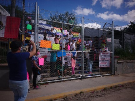 De nueva cuenta los centroamericanos con pancartas, cartulinas y con banderas de sus países, se manifestaron dentro del campamento atrás de la malla metálica que delimita esa área con el recinto del Puente Nuevo Internacional “La Puerta de México”, en donde madres e hijos pedían que reactiven los procesos para ingresar a Estados Unidos.