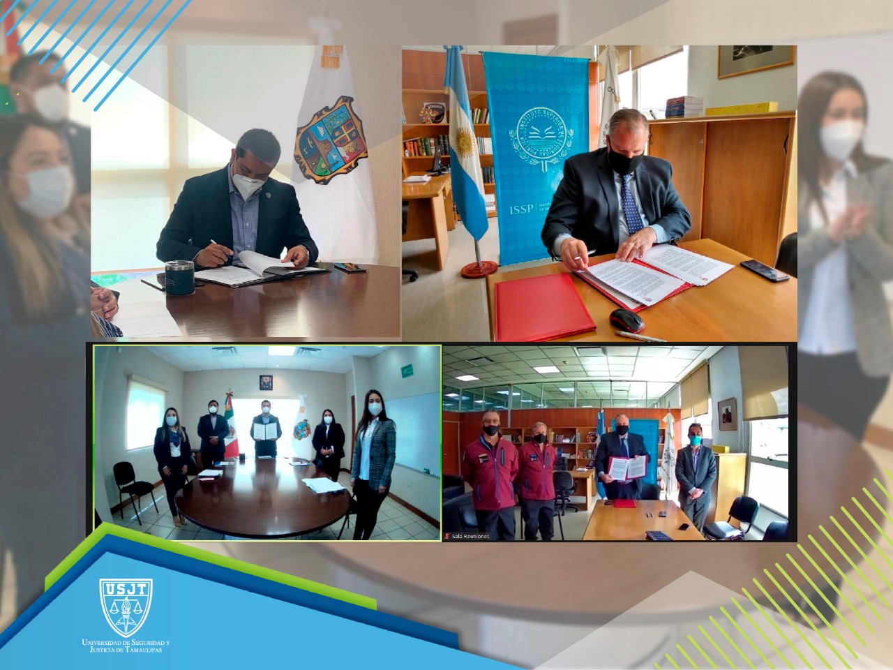 Ciudad Victoria, Tamaulipas.- Gracias a la vinculación realizada por la Universidad de Seguridad y Justicia de Tamaulipas (USJT), este jueves 29 de octubre se llevó a cabo la firma de un convenio de colaboración con el Instituto Superior de Seguridad Pública Ministerio de Justicia y Seguridad (ISSP) y el Instituto Universitario de Seguridad (IUSE) de la Ciudad Autónoma de Buenos Aires, Argentina.
