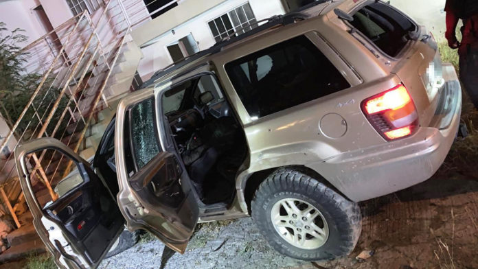 Tras darle seguimiento por varias cuadras, se logró darle alcance a una Jeep Cherokee dorada, con placas de circulación del estado de Texas, además en el lugar dos agresores quedaron sin vida y se llevó a cabo el aseguramiento de dos armas de fuego.