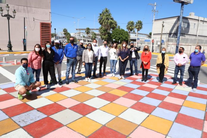 REYNOSA, TAM.- Con la estrategia de Urbanismo Táctico, Reynosa Placemaking resalta la importancia de cuidar y respetar a los peatones, asignando mayores y más atractivos espacios para un desplazamiento más seguro, y con esa finalidad los cruces estratégicos han sido ampliados y señalados con atractivas figuras y colores.