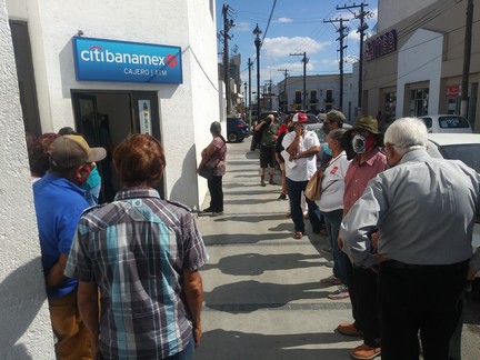Matamoros, Tamaulipas.- Este martes se inició con el pago de la pensión de 68 y Más a los adultos mayores que cobran a través de instituciones bancarias y tarjetas, lo que generó que cientos de abuelitos acudieran a los bancos por su apoyo gubernamental.