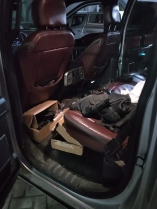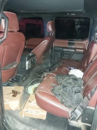 Los efectivos estatales le marcaron el alto a una Ford F-150 color gris, modelo 2018 y placas del estado de Tamaulipas, que era tripulada por tres hombres; posteriormente llevaron a cabo la inspección del vehículo, encontrando en el interior tres armas largas, un arma corta y equipo táctico.