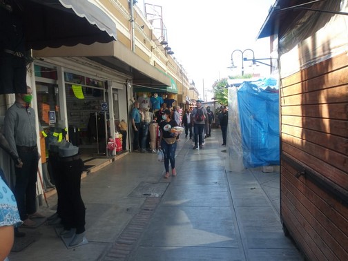 Comentó que hay familias que van en grupo a comprar, a los cuales amablemente se les pide que solo ingresé uno a comprar a las tiendas, con el propósito de respetar las medidas de salud, que son la sana distancia, uso de cubrebocas y gel antibacterial para prevenir un contagio del virus.