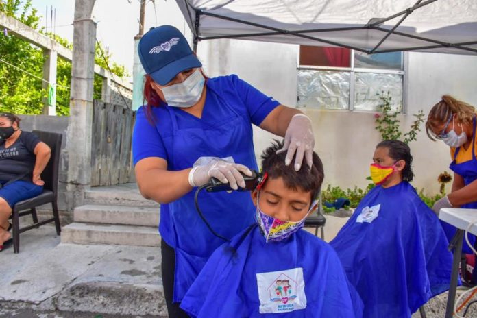 Personal del Sistema DIF Reynosa acercó hasta el domicilio de las familias de la Colonia Los Muros, diversos servicios, entre ellos consultas médicas, terapias físicas, cortes de cabello y entrega de frutas y verduras.