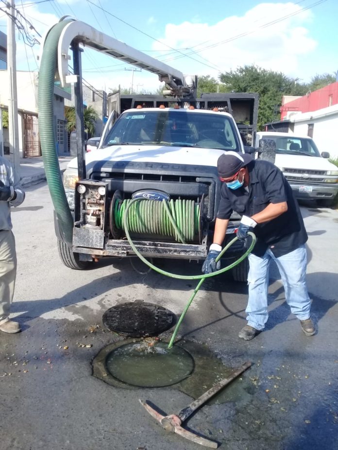 Además, con el camión Vactor se desazolvó la red sanitaria en calle Nogales de Los Encinos, calle Carmina del Fraccionamiento Reynosa y Paseo de la Cañada en Fuentes Sección Lomas.