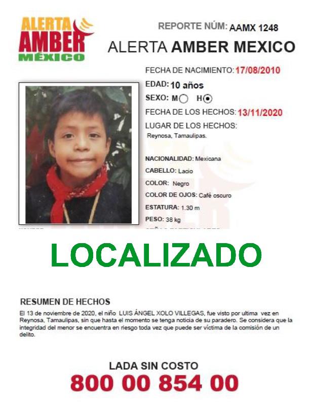 Reynosa, Tamaulipas. La Fiscalía General de Justicia del Estado de Tamaulipas informa que, derivado de las acciones coordinadas de búsqueda este sábado fue localizado con vida y en perfecto estado de salud, Luis Ángel Xolo Villegas.