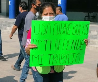 “Usa el cubreboca, de ti depende mi trabajo”, “Cuidemos nuestro trabajo, usemos el cubreboca”, “pasemos una navidad en familia, usemos el cubreboca”, se podía leer en algunas de las tantas cartulinas que traían los comerciantes.