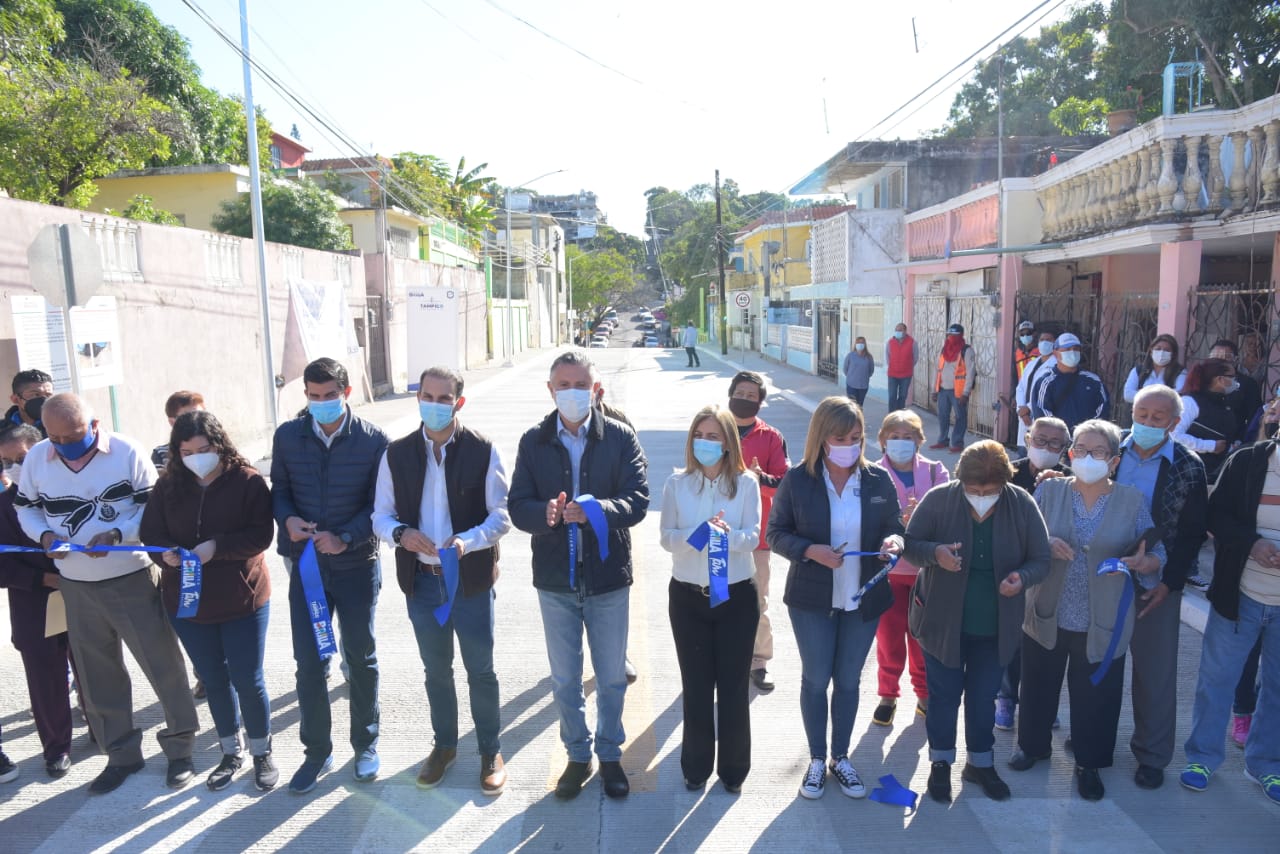 Añadió que además de la pavimentación se realizó la reposición integral de las redes de agua potable y drenaje sanitario, construcción de guarniciones, rampas y banquetas; instalación de tomas y descargas domiciliarias y colocación de postes y luminarias led.