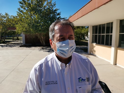Matamoros, Tamaulipas.-En visita de entrega de Aulas Multisensoriales a Centros de Atención Multipliques y materiales didácticos en esta frontera y de Valle Hermoso, el secretario de Educación del Estado, Mario Gómez Monroy, señaló que no habrá regreso a las aulas educativas en el mes de enero, si el semáforo epidemiológico no se encuentra en verde.