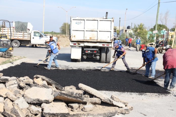 REYNOSA, TAM.- Los residentes del fraccionamiento San Valentín recibieron los beneficios del programa social ‘Rescatando Tu Barrio’, que inició la mañana de este viernes 11 de diciembre con la rehabilitación de calles con 70 toneladas de asfalto; labor de fumigación y otras acciones de bien colectivo.