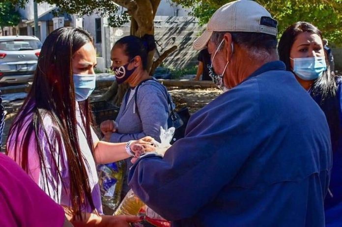 Los beneficiarios recibieron artículos de la canasta básica, como arroz, frijol, lentejas, aceite, harina, maseca, leche y atún entre otros alimentos.