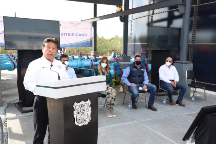 REYNOSA, TAM.- El Dr. Tomás Ibañez Castañeda, Director General del Grupo Tres Picos, expresó que la culminación del Tanque Cisterna del fraccionamiento Vista Alta, le provoca gran alegría por el servicio que dará a más de 5 Mil familias: “es así como la empresa cumple con los compromisos pactados en las autorizaciones de los fraccionamientos desarrollados en Reynosa, ejecutando y entregando obras de calidad con responsabilidad y compromiso social con la comunidad”, dijo, ante la Alcaldesa Maki Ortiz, el Gobernador Francisco García Cabeza de Vaca y el Gerente de COMAPA, Jesús Ma. Moreno Ibarra.