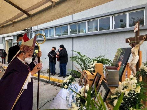 En la primera celebración eucarística del Obispo en los hospitales, registrada en las instalaciones del Issste, pronunció una oración especial por aquellos médicos adscritos a este hospital que han fallecido a causa del contagio del Covid-19 al atender a los pacientes positivos.