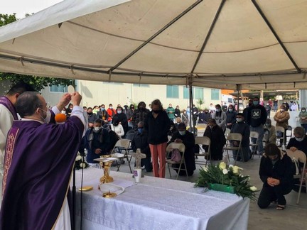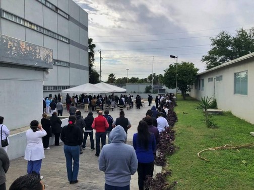 Matamoros, Tamaulipas.-En el patio del hospital del Instituto de Seguridad y de Servicios Sociales de los Trabajadores del Estado (ISSSTE) en esta frontera, se efectuó este lunes una misa especial por la salud de los pacientes enfermos con Coronavirus y por el eterno descanso de los fallecidos a causa de este virus.
