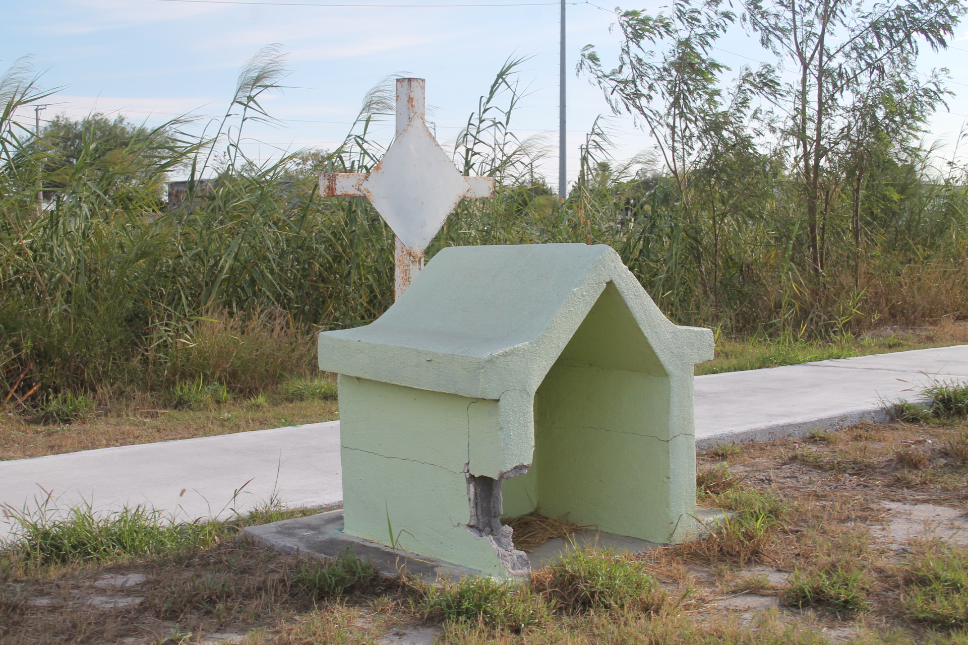 En el bordo rustico –sin protección alguna- se pueden apreciar cruces de madera y algunas más hechas con cemento y ladrillos que han sido alzada a manera de tributo a víctimas que han caído en las aguas del Anzaldúas.