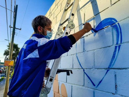 Con el mensaje “Te amamos Matamoros, pronto saldrá adelante”, acompañado de unas manos con un corazón, fue el primer mural que se plasmó en una barda de una propiedad en la Avenida Solidaridad en esta ciudad.