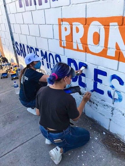 Matamoros, Tamaulipas.- Con el propósito de enviar un mensaje de ánimos y armonía en estas fechas decembrina a todos los matamorenses, integrantes de la organización Jóvenes en Acción en coordinación con la Diputada Local Ivett Bermea, pintaron un mural en una vialidad con alta circulación.