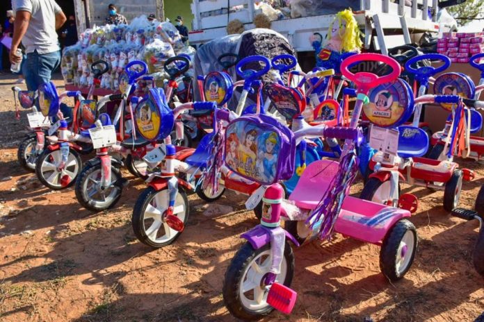 Los menores de edad fueron beneficiados con artículos escolares, piñatas, dulces, bicicletas, muñecas, balones y muchos regalos más.