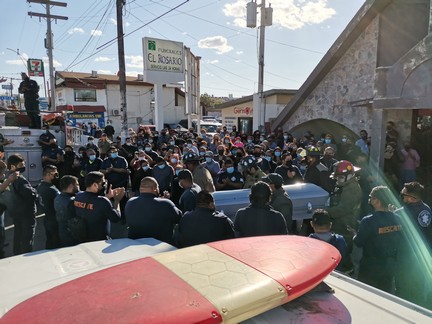 Matamoros, Tamaulipas.- La tarde de este sábado elementos del Heroico Cuerpo de Bomberos de está frontera, dieron el últimos adiós a su compañero Julio Gauzin, en una caravana fúnebre en donde el ataúd fue trasladado en un camión de bomberos y los elementos caminando atrás de él, así como todas las unidades de emergencia.