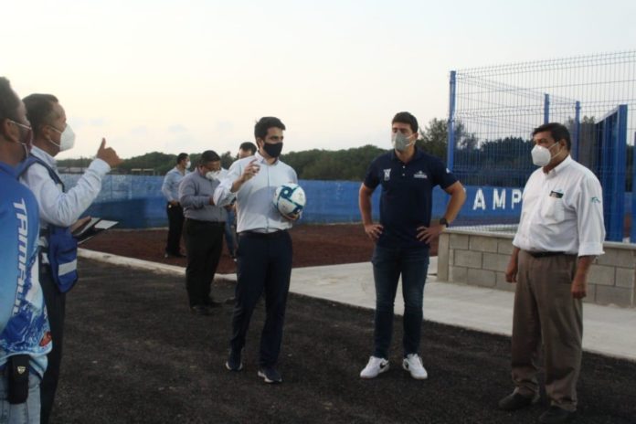 En Tampico entregó la rehabilitación de las canchas de frontón, además de la construcción de una cancha de fútbol de pasto sintético con medidas oficiales y se dio arranque a la construcción de una cancha de fútbol en la plaza de la Colonia Tolteca.