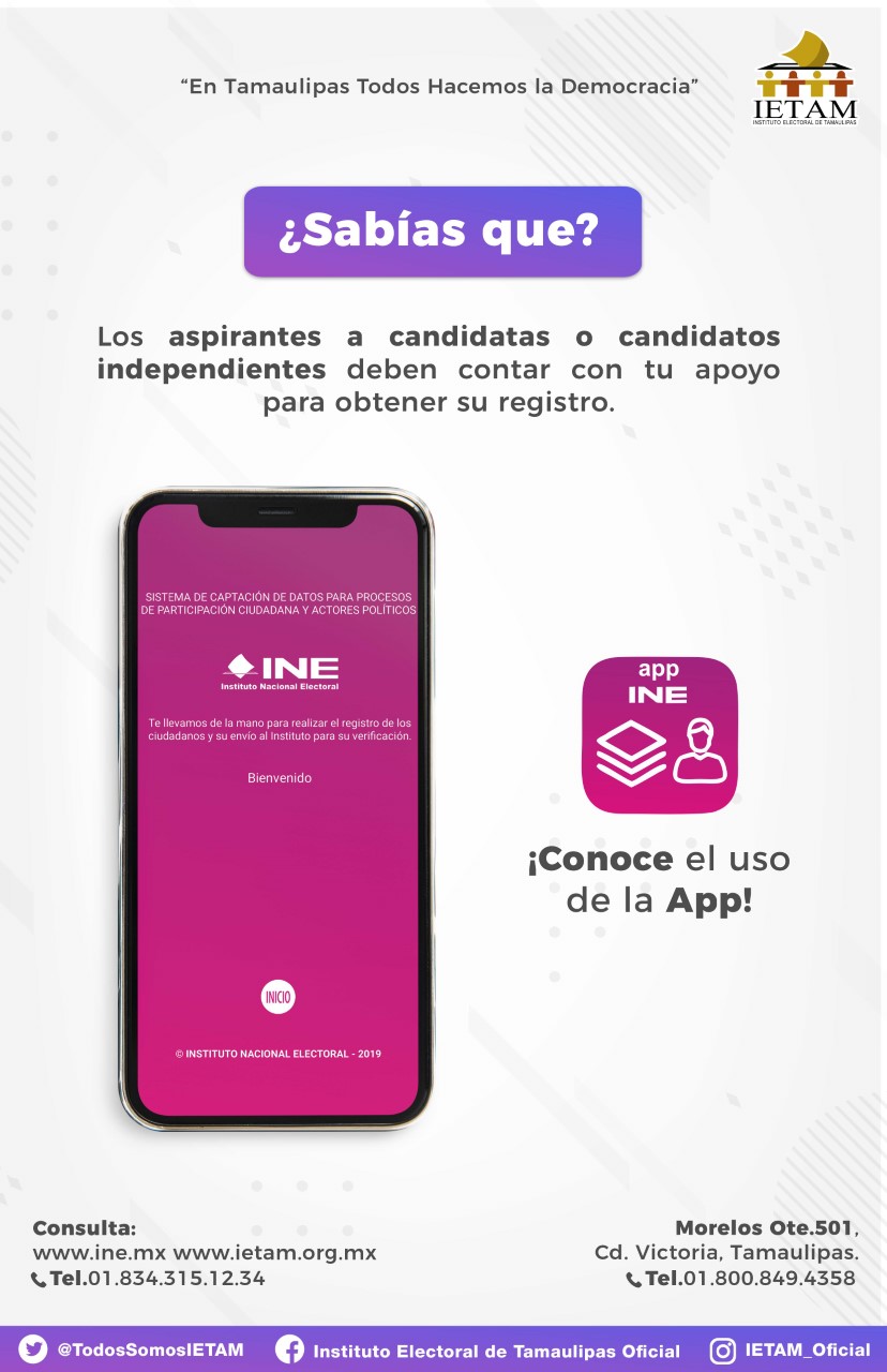 Cd. Victoria, Tamaulipas.- En Tamaulipas un total de 29 personas aspirantes a una candidatura independiente, estarán hasta el 31 de enero, recabando el apoyo ciudadano, por medio de una aplicación móvil (APP), herramienta tecnológica implementada por el Instituto Nacional Electoral para lograr el apoyo de la ciudadanía, así como para llevar un registro de las y los auxiliares gestores de las personas aspirantes.