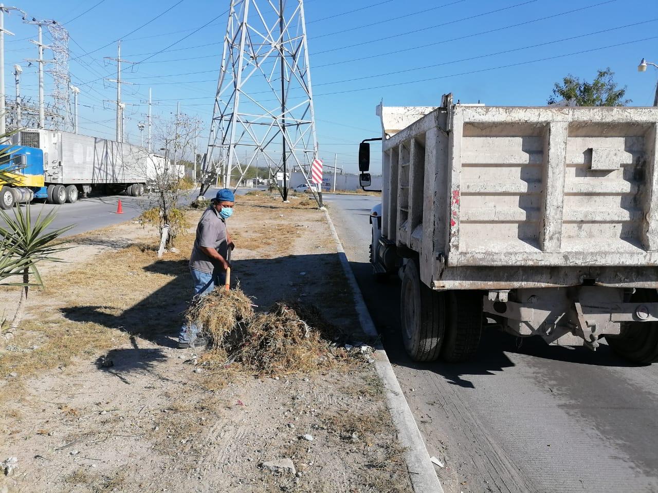 REYNOSA, TAM.- El R. Ayuntamiento llevó a cabo, este lunes 4 de enero, actividades de deshierbado y limpieza en el bordo del canal en la colonia Las Mitras, así como en las avenidas J. López Portillo, Héroes de la Reforma y Libramiento Reynosa-Monterrey.