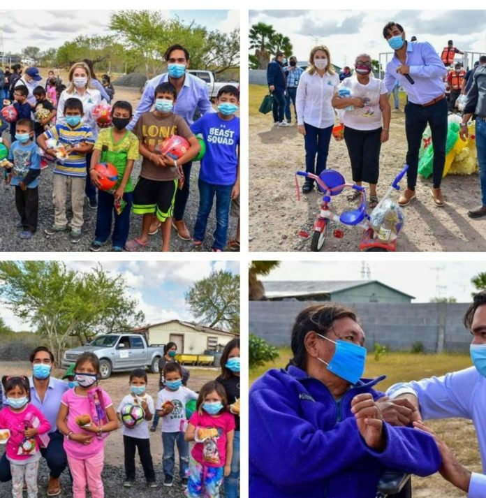 Reynosa, Tamaulipas.- Continuando con las actividades del DIF local, el presidente de este Patronato, Carlos Peña Ortiz, recorrió este martes los ejidos Galeana, y Libertad para llevar a los niños algunos juguetes, dulces y entregar a las familias Rosca de Reyes, entre otros apoyos que fueron entregados por el presidente del DIF, parte del equipo y Ayuntamiento.