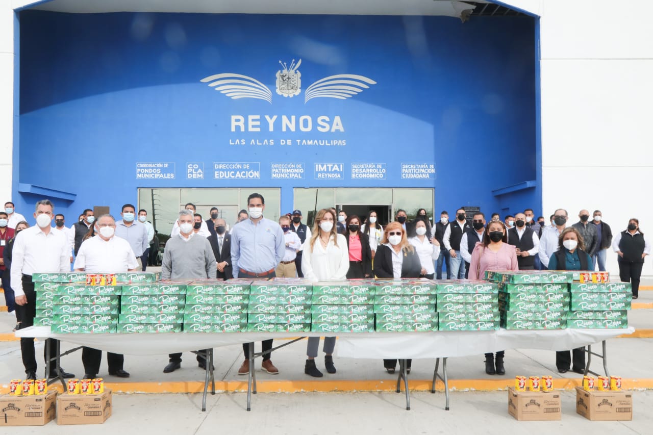 En representación del Gobierno Municipal, la Alcaldesa de Reynosa entregó el presente en la mencionada colonia, acompañada por funcionarios municipales, integrantes del Cabildo y por el Presidente del Patronato del DIF-Reynosa.