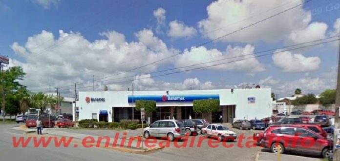 Reynosa, Tamaulipas.-Violento asalto a mano armada se registro en una sucursal bancaria, donde presuntamente un sujeto amedrento a clientes y empleados para robar dinero del establecimiento.