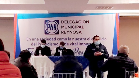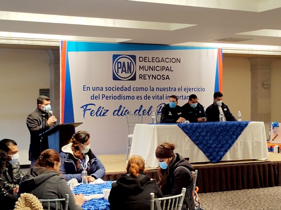 Acompañando del dirigente estatal del PAN, Luis René Cantú Galván, así como el Secretario General del PAN local, Diego Quezada, ante los medios informativos mencionó que ese evento es un presente para agradecer la cobertura que durante todo el año han estado realizando los medios informativos.