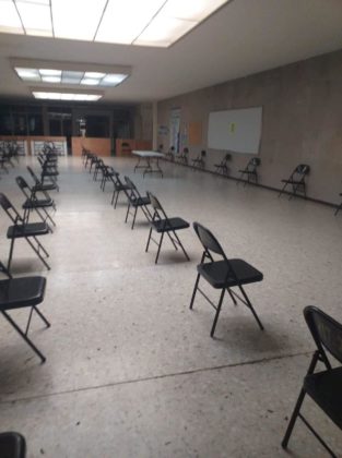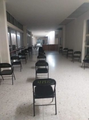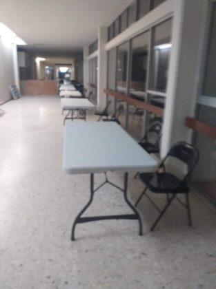 Desde la tarde noche de este martes personal del nosocomio, colocó las mesas y sillas en donde tendrá que esperar los enfermeros, enfermeras, camilleros, médicos y todo aquel elemento que se encuentre operando en el área de Covid.
