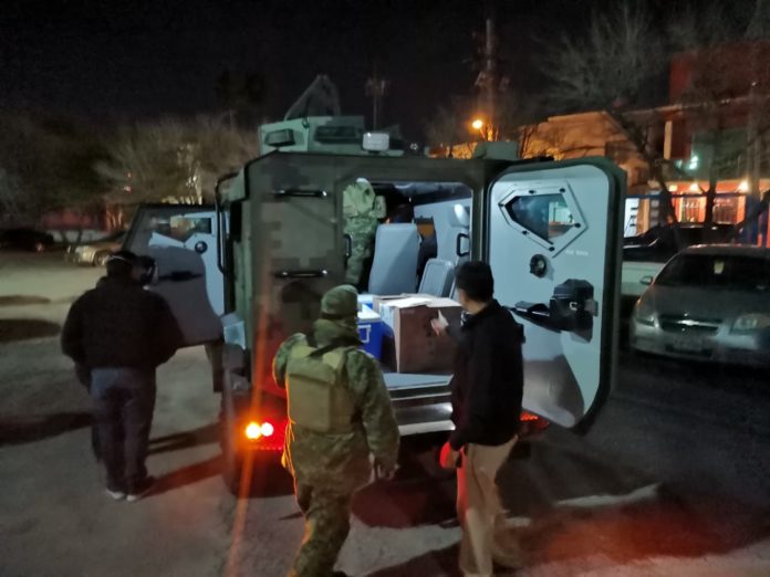 Matamoros, Tamaulipas.-Las dosis Pfizer llegaron resguardadas por personal de la Sedena y de la Marina, convoy que salió desde la ciudad de Reynosa hasta Matamoros.