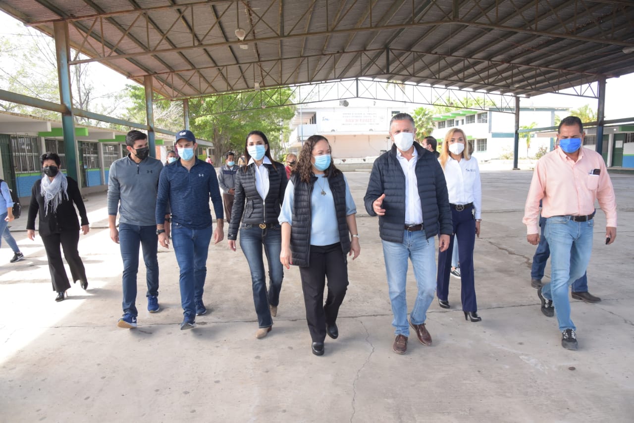 El jefe de la comuna, acompañado de la Regidora Presidenta de la Comisión de Educación, Nora Gómez González y los diputados locales Roza González y Mon Marón, señaló que con el apoyo de más de 25 cuadrillas del área de servicios públicos se atendió el compromiso asumido con docentes y padres de familia.