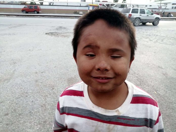 Reynosa, Tamps.-José es un niño de 7 años de edad, durante las tardes acompaña a su madre con discapacidad a solicitar ayuda económica a clientes de una conocida cadena de tiendas de autoservicio por el rumbo de la colonia Ferrocarril.