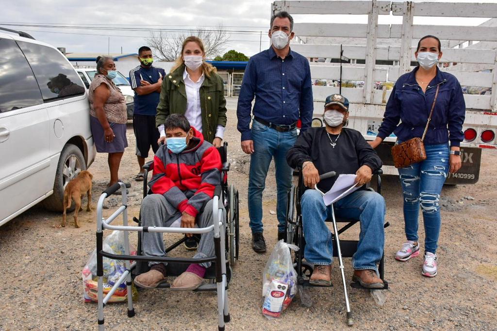 Habitantes de la Colonia Olivos y el Ejido La Retama, recibieron productos de la canasta básica, frutas, verduras, cubrebocas y fumigación.