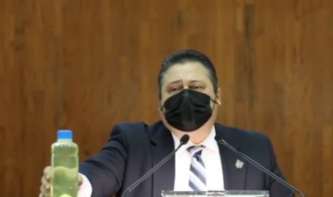 “Yo en lo particular, tengo consumiendo dióxido de cloro, el CDS, que es este bote diluido con agua, desde marzo del 2020, constantemente visito colonias, me toca saludar a personas que tienen padecimientos, dengue, inclusive covid, y afortunadamente me ha resultado positivo, varios de los compañeros aquí ya lo han consumido, funcionarios, muchos ciudadanos, y les ha ido muy bien, entonces, yo creo que es positivo, pero lo más importante es que debe ser producido por profesionales, en este caso por ingenieros químicos”.