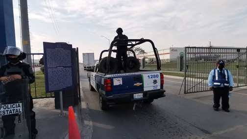 En esta área Industrial los elementos se encuentran postrados entre las maquiladoras Inteva planta 1 y Autoliv; en donde hasta el momento no han intervenido en ninguna de las manifestaciones de los obreros.